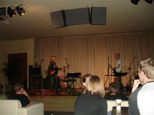 The couches and tables that are usually housed in the coffee area were moved to the worship area for the concert. It made for a very intimate concert setting. I wish I had gotten in a little earlier so I could have scored a seat on a couch, but I spent too much time at the merch table.