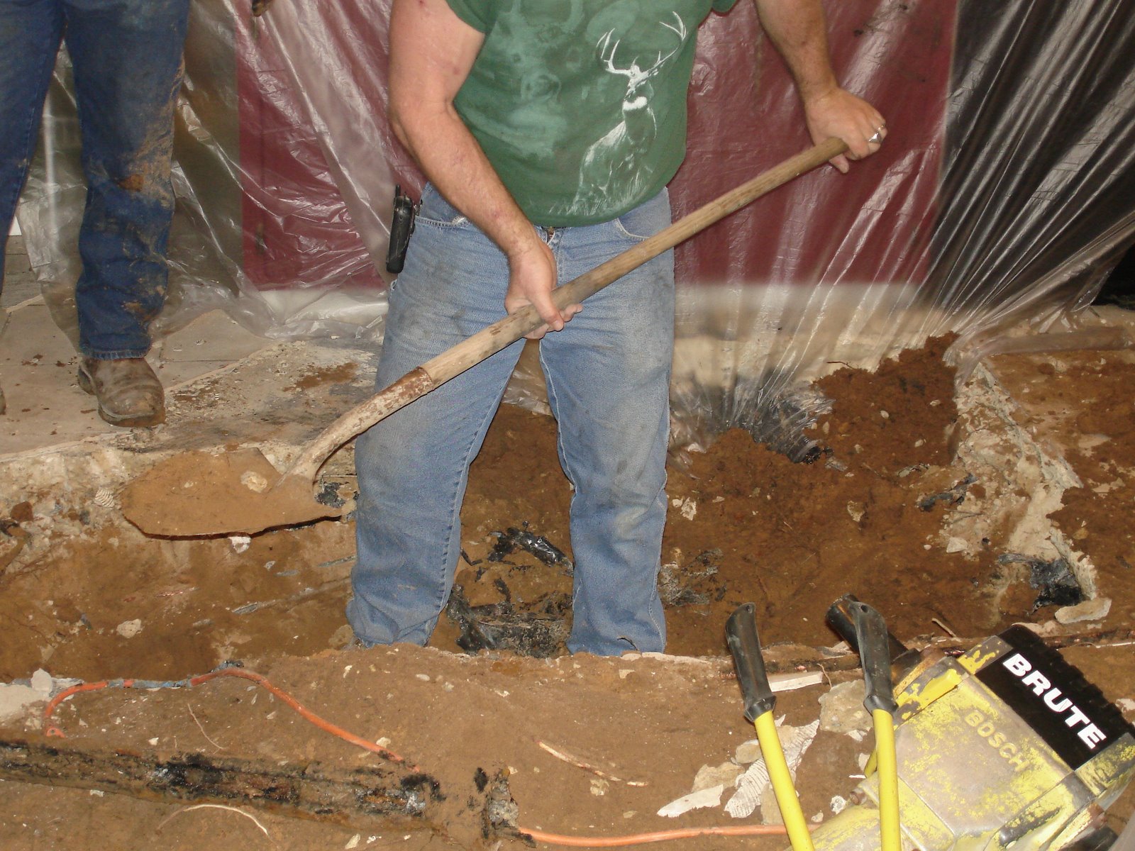 The men started working on the plumbing issues in our house today. You know it’s not good when the jackhammer stops and all you hear is, “Oh, no!” and, “Oooh, that’s not good,” and, “I’ll have to call the insurance company again.”