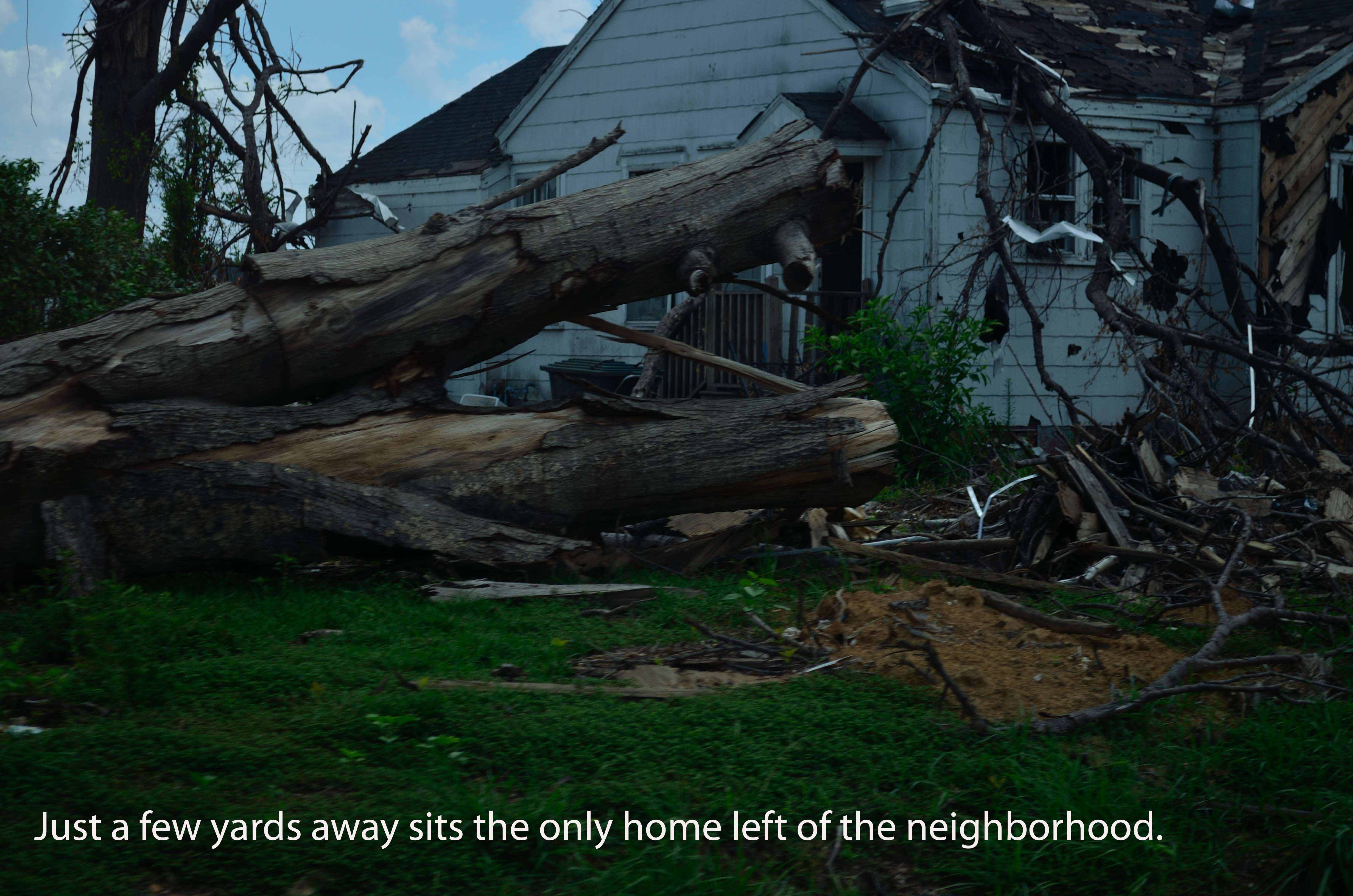 Three months have passed, and the clean-up crews have worked non-stop. On one side of McFarland Blvd, there is an open field where homes and tall centuries-old oaks once stood.