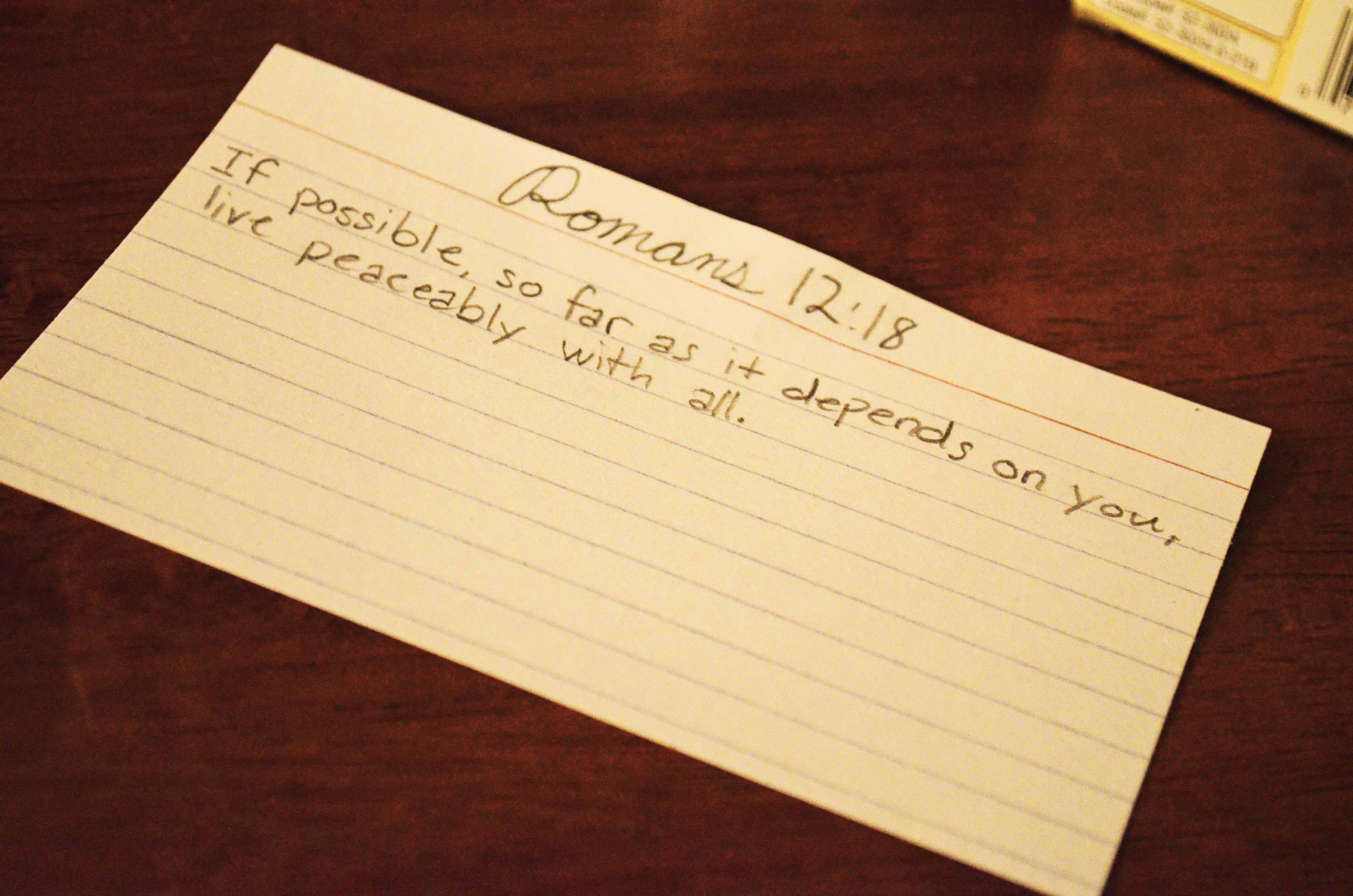 Asking the kids to memorize this verse has given us new questions to ask during those times when the kids are doing everything but seeking to live peaceably with one another.