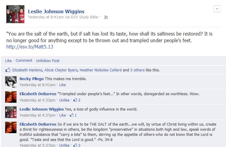 The following exchange encouraged me to think longer on the meaning of Matthew 5:13: