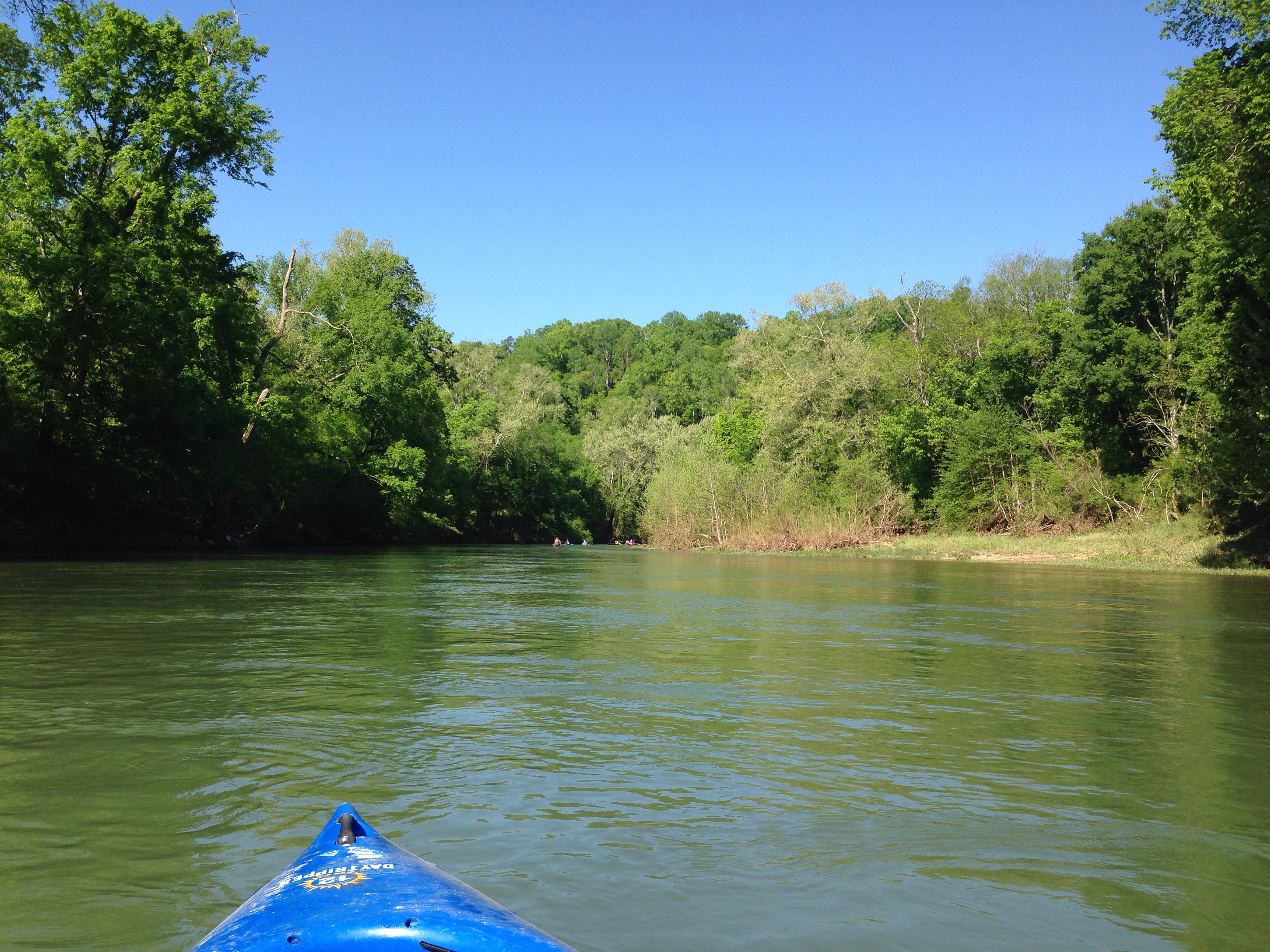 I was a little bit nervous; this trip was my first time to paddle a kayak. The camp’s proprietor had already warned us that the water was about a foot higher and moving quickly in some spots because of recent rains. So, my only fear was that I would run against a downed tree and swamp my boat.