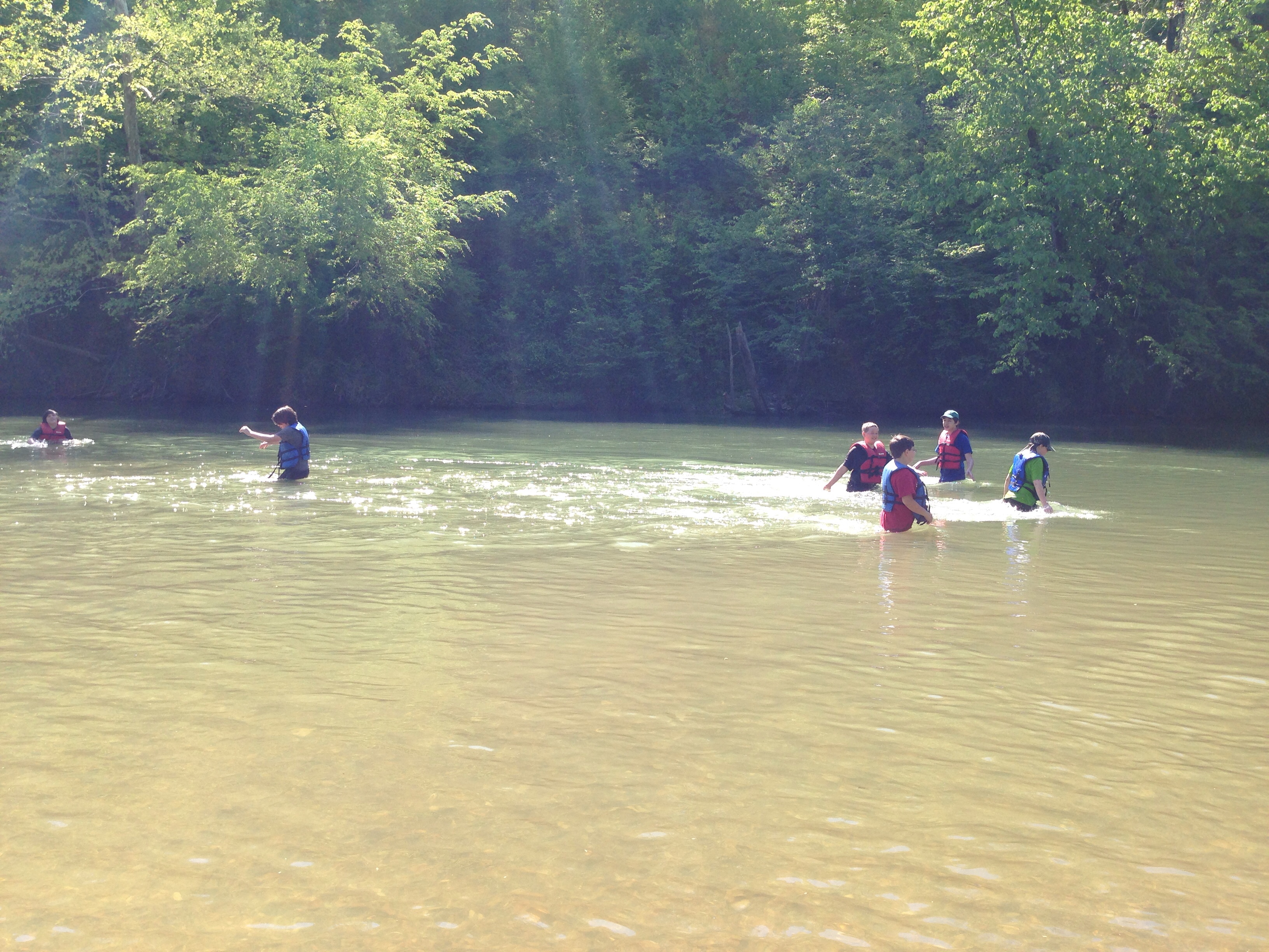 The pictures below show where we stopped to have our Sunday morning scout-led devotion time. After playing around in the water, one of the scouts shared a verse about Jesus’ baptism by John the Baptist and led us in prayer. Then it was back down the river.